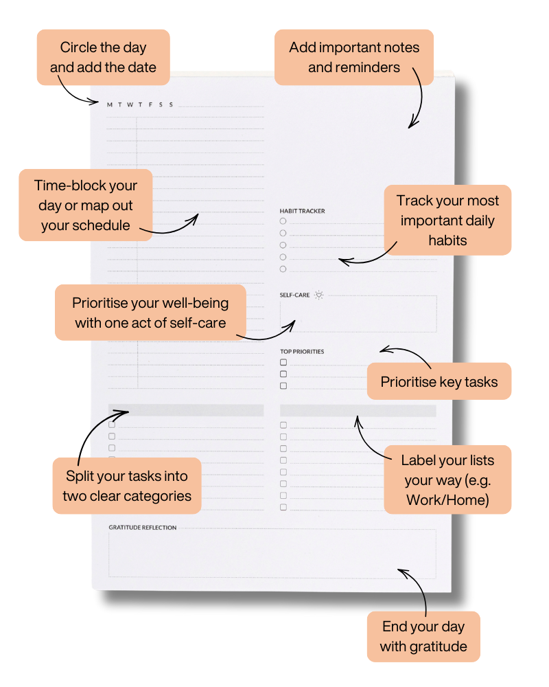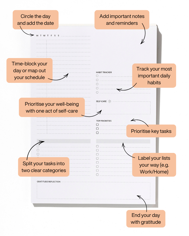 Top Priorities List: Identify your most important tasks so you can stay focused and intentional.