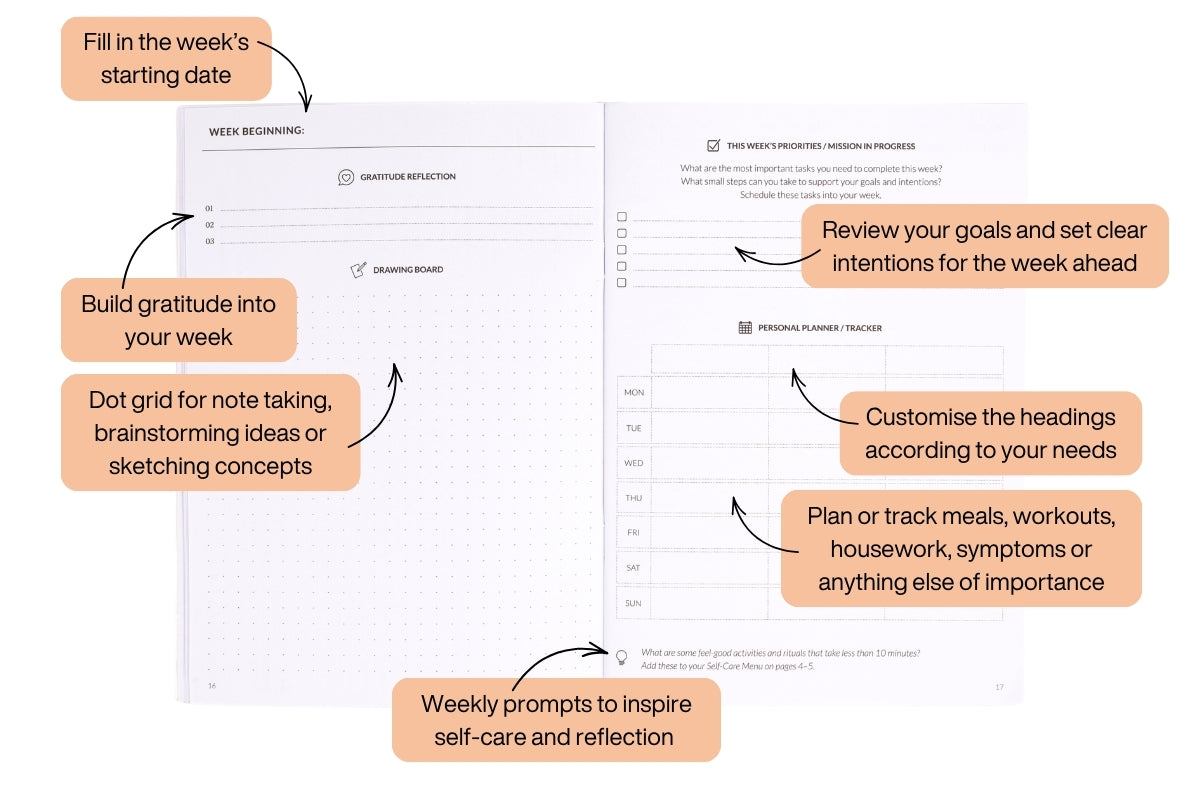 Gratitude Reflection: Build gratitude into your week by noting down the things—big or small—that brought joy, peace, or fulfilment.